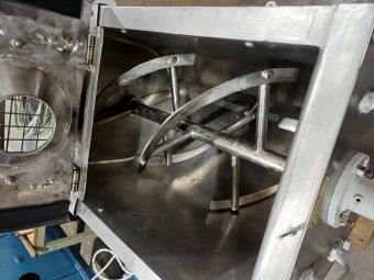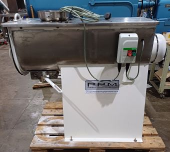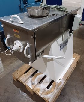 Refurbished 60L Winkworth Ribbon BlenderStainless steel constructionHalf hinged lidInlet funnel with grid enabling to add powder whilst mixingManual slide valve dischargeSafety grid on outlet valveNew control box - 1 ph 240v